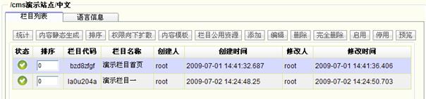 l 栏目:内容存储及展示的基本单元。包括有页面栏目以及区域栏目,区域栏目下不存放内容信息,只是一个逻辑的节点。