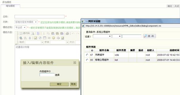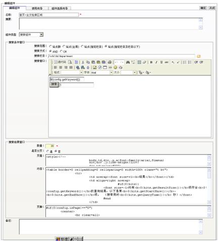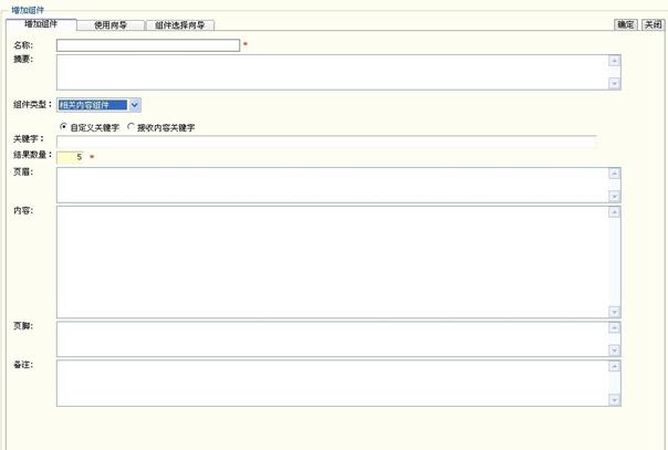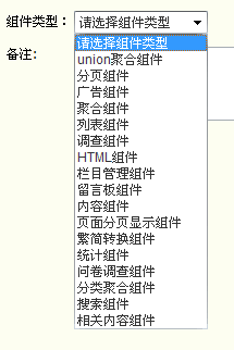 l 系统公用组件:公用组件是发布类模板与展示类模板之间的另一座桥梁,包括有union聚合组件,分页组件,广告组件,聚合组件,列表组件,调查组件,HTML组件,栏目管理组件,留言板组件,内容组件,页面分页显示组件,繁简转换组件,统计组件,分类聚合组件,相关内容组件,搜索组件。